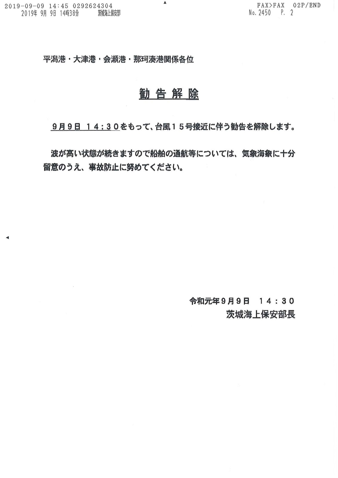 茨城海上保安部より