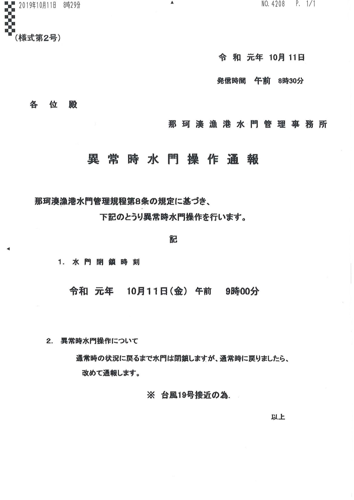 那珂湊漁港水門管理所より
