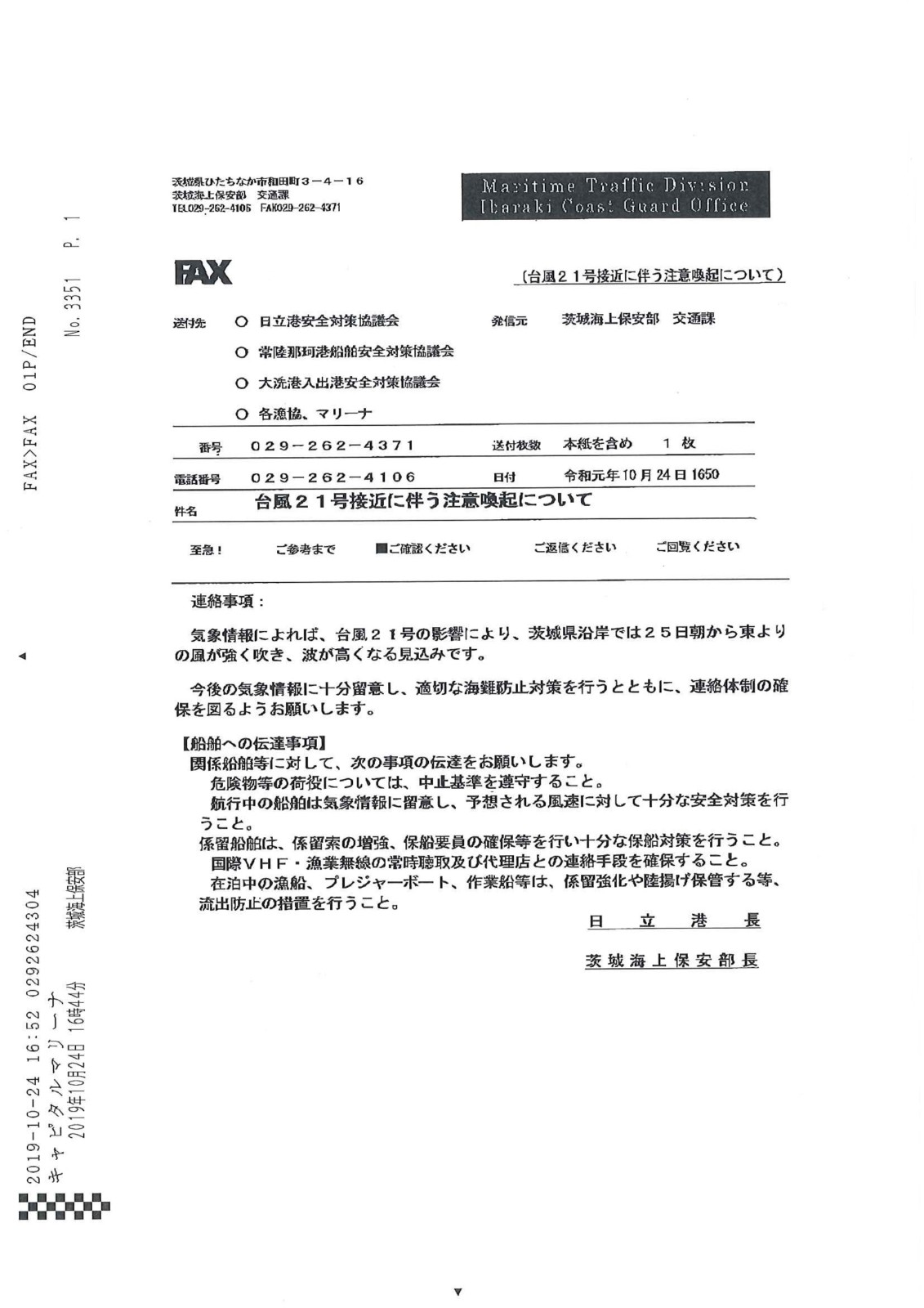 茨城海上保安部より