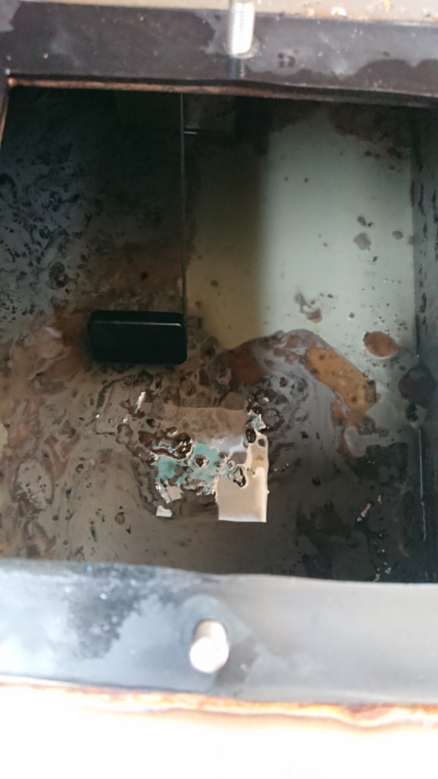 燃料タンクを取り外し清掃を行いました。長く大切に乗られている船も、燃料タンク内が汚れてしまったり水が溜まってしまう場合があります。