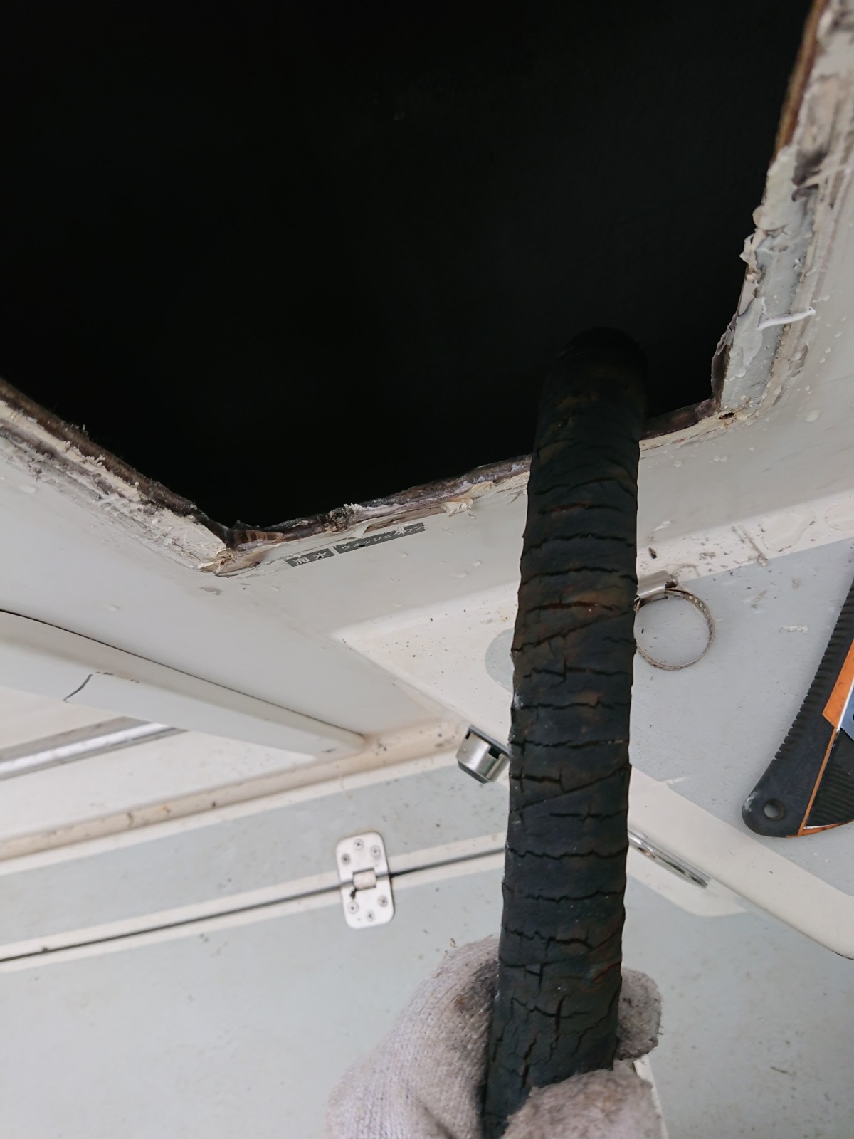 デッキウォッシュのホース交換を行いました。ホースが劣化して水漏れを起こしていました。ホース関係も点検してみて下さいます。