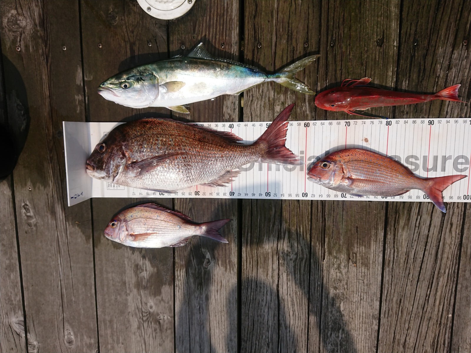 マダイ3.4㎏頭、ホウボウ、イナダ