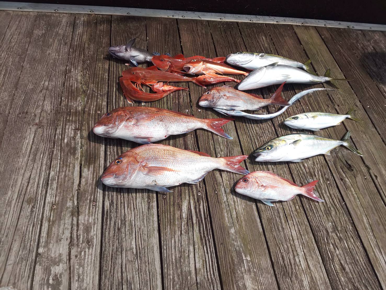 マダイ3㎏、ワラサ4㎏、カサゴ、ホウボウ、ガンゾウビラメ、カナガシラ、タチウオ