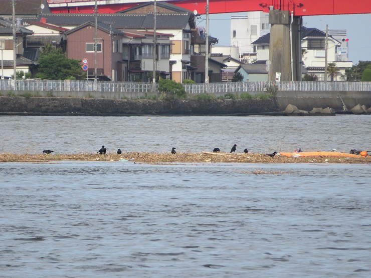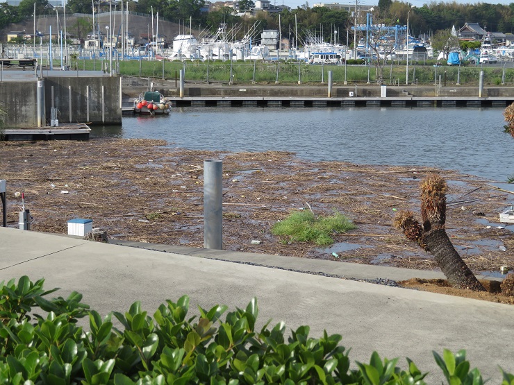 マリーナのドッグ内、涸沼川にも押し寄せています。