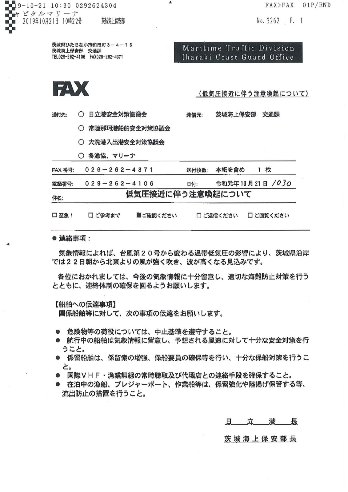 茨城海上保安部より