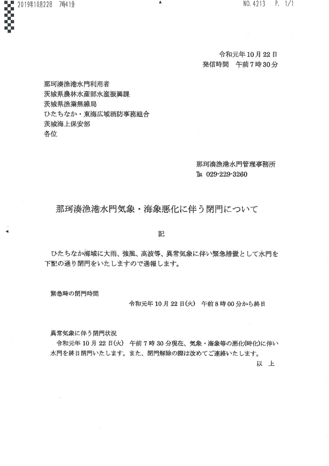 那珂湊漁港水門管理事務所より