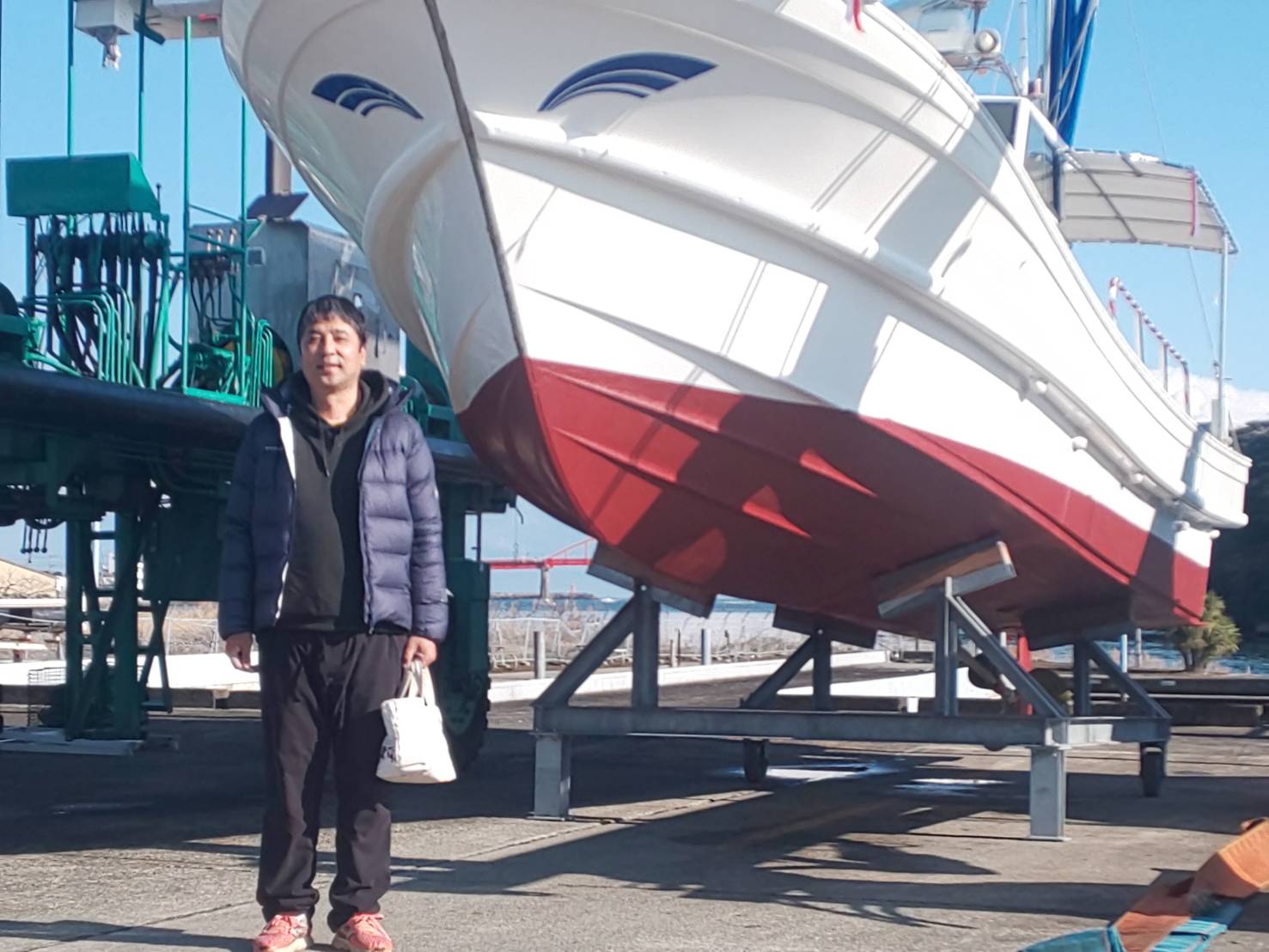 本日進水式を行い、また新たに当マリーナにお仲間が増えました。船種 ヤマハDY-34シューティングスターさんです。皆様宜しくお願いします。