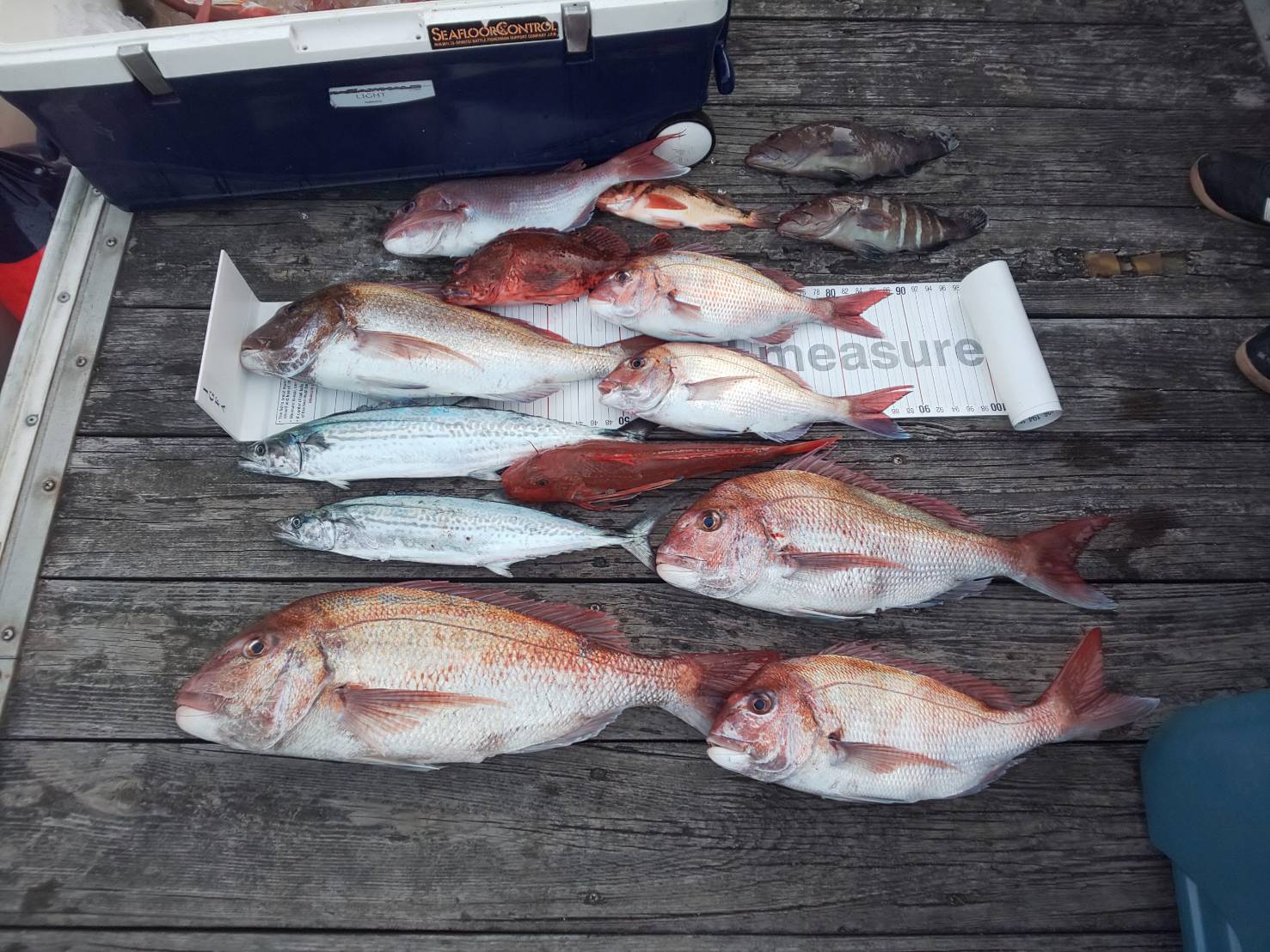 マダイ4㎏頭、サワラ、ホウボウ、マハタ、カサゴ