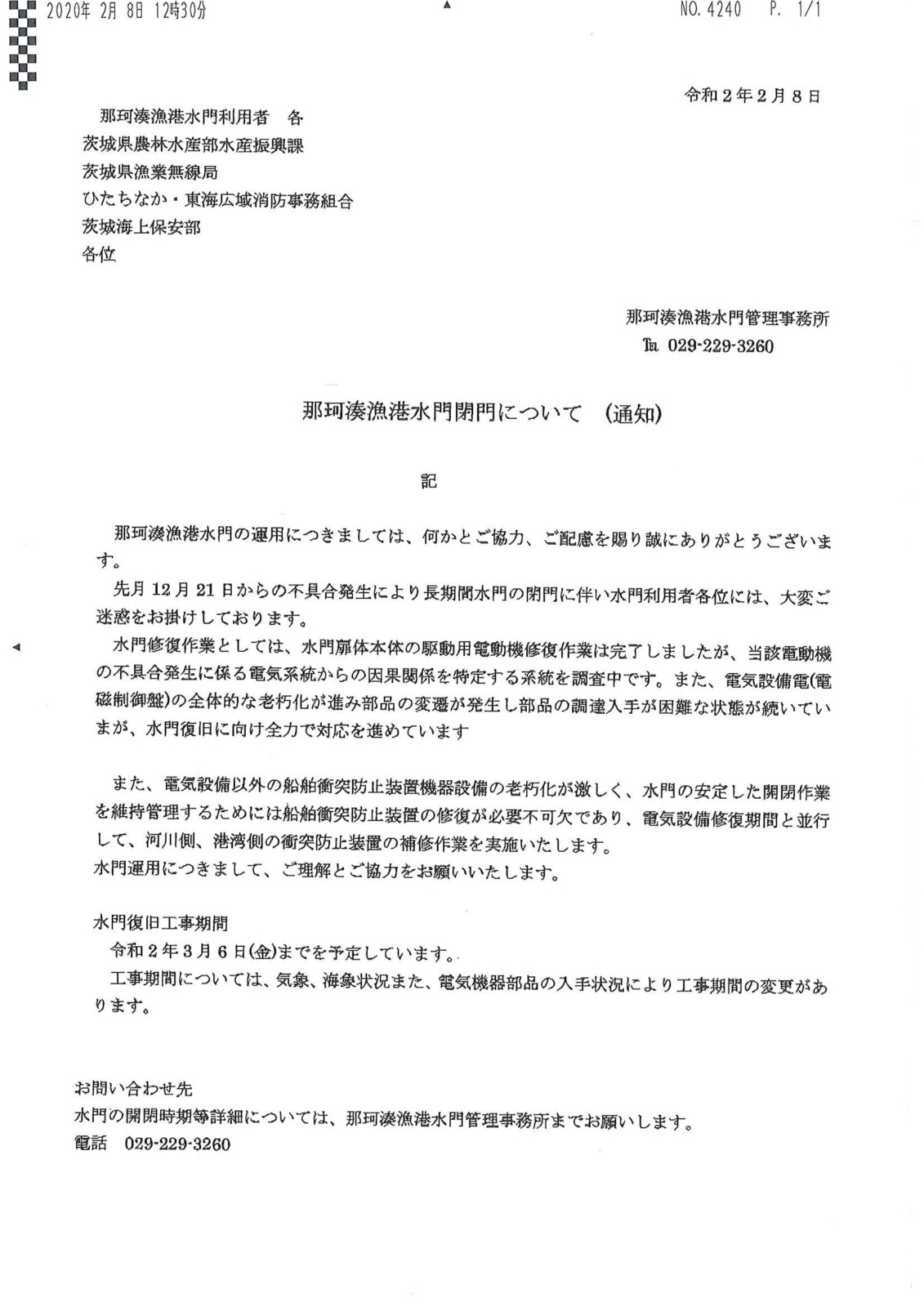 那珂湊漁港水門管理事務所より