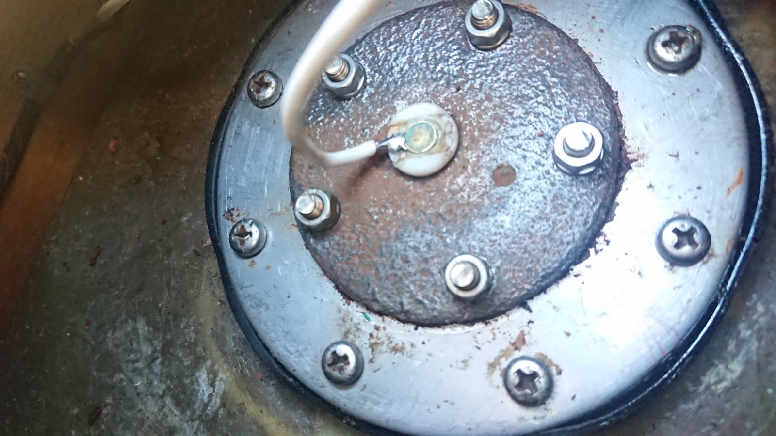 燃料タンクの油面センサーの反応が悪かった為確認したところ、錆びて反応が悪くなっていたようです。1度外し、錆を落としてから再塗装行っています。