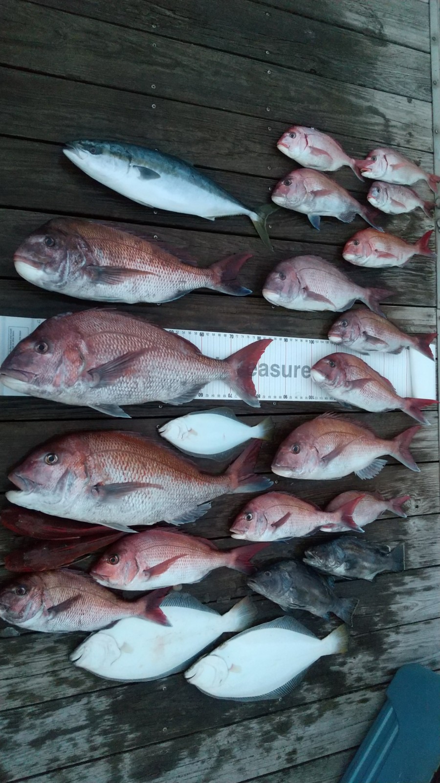 マダイ8.4kg頭、8.1kg、5.2kg、ワラサ4kg、ヒラメ2.2kg、イシナギ、ホウボウ等