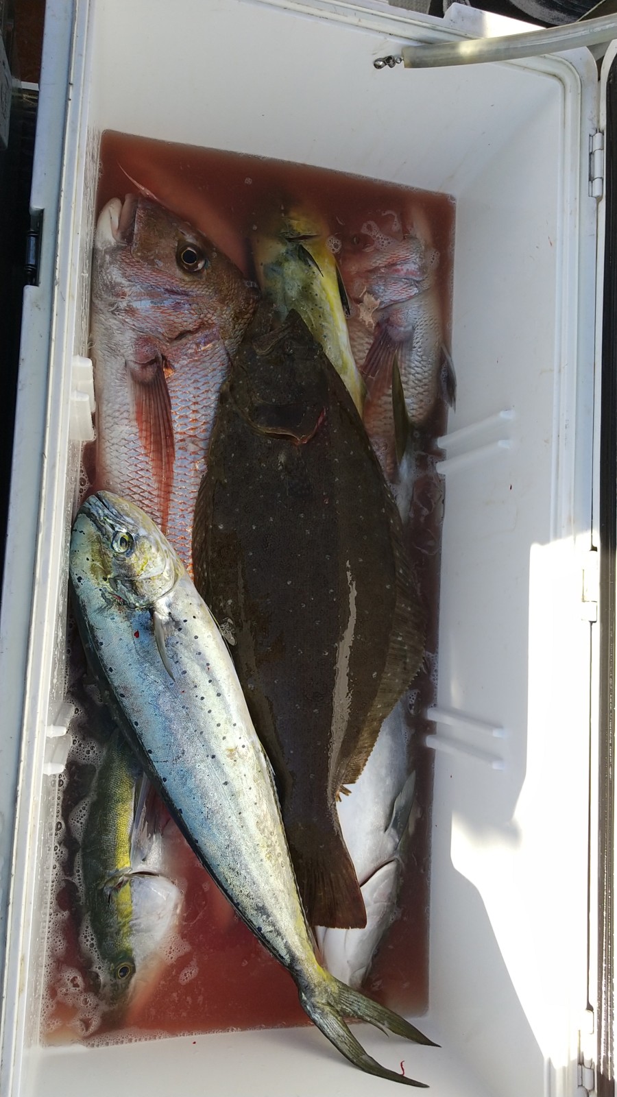 マダイ3kg頭、ワラサ、ヒラメ、ホウボウ