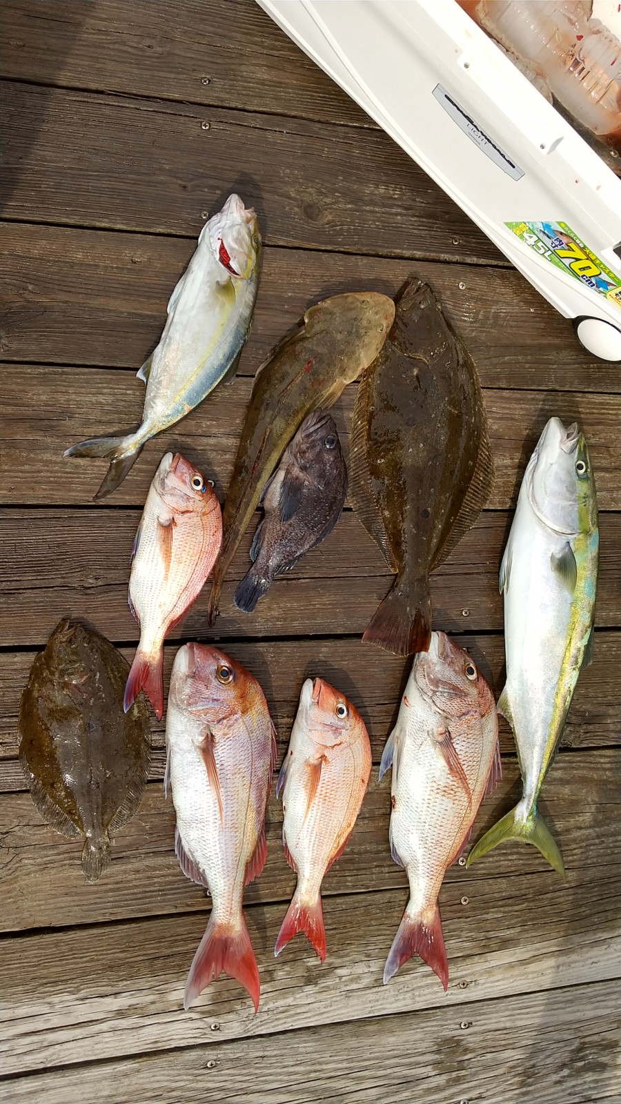 クロアナゴ、マダイ3kgクラス多数、イナダ、カンパチヒラメ、