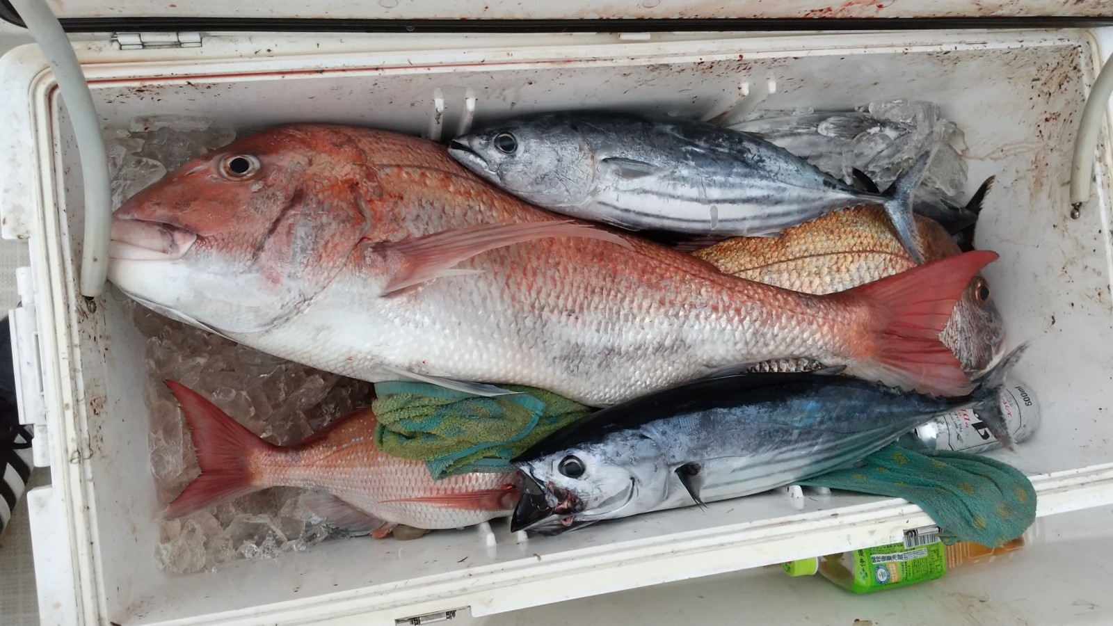 カツオ釣りに行って、帰りにマダイ狙いで1投目で6.5kgのマダイが釣れたそうです。皆さん大物が掛かってもいいようにタックルセッティングに気をつけて下さい。