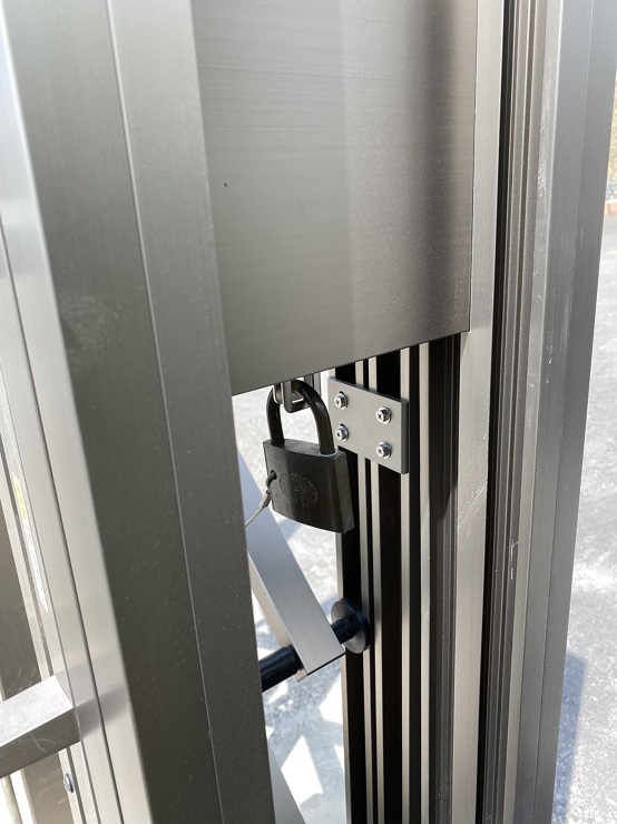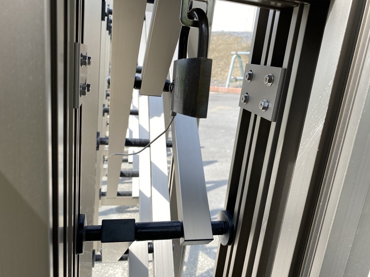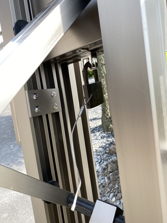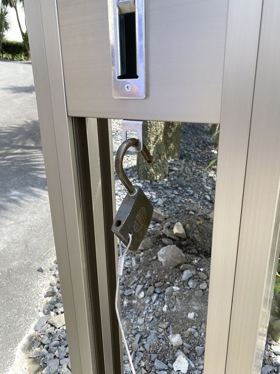 マリーナのバーベキューガーデンの屋根と出入り口の門が新しくなりました。門に関しましては以前の物と同様に南京錠にて施錠しています。オーナー様がお持ちの鍵で解錠出来ます。門の外側から見て右側に施錠があります。また、強風時に門中央、下に付いてます落とし込みがしてある場合がありますので、そこを上げて門を開けて頂きますようご協力よろしくお願い致します。