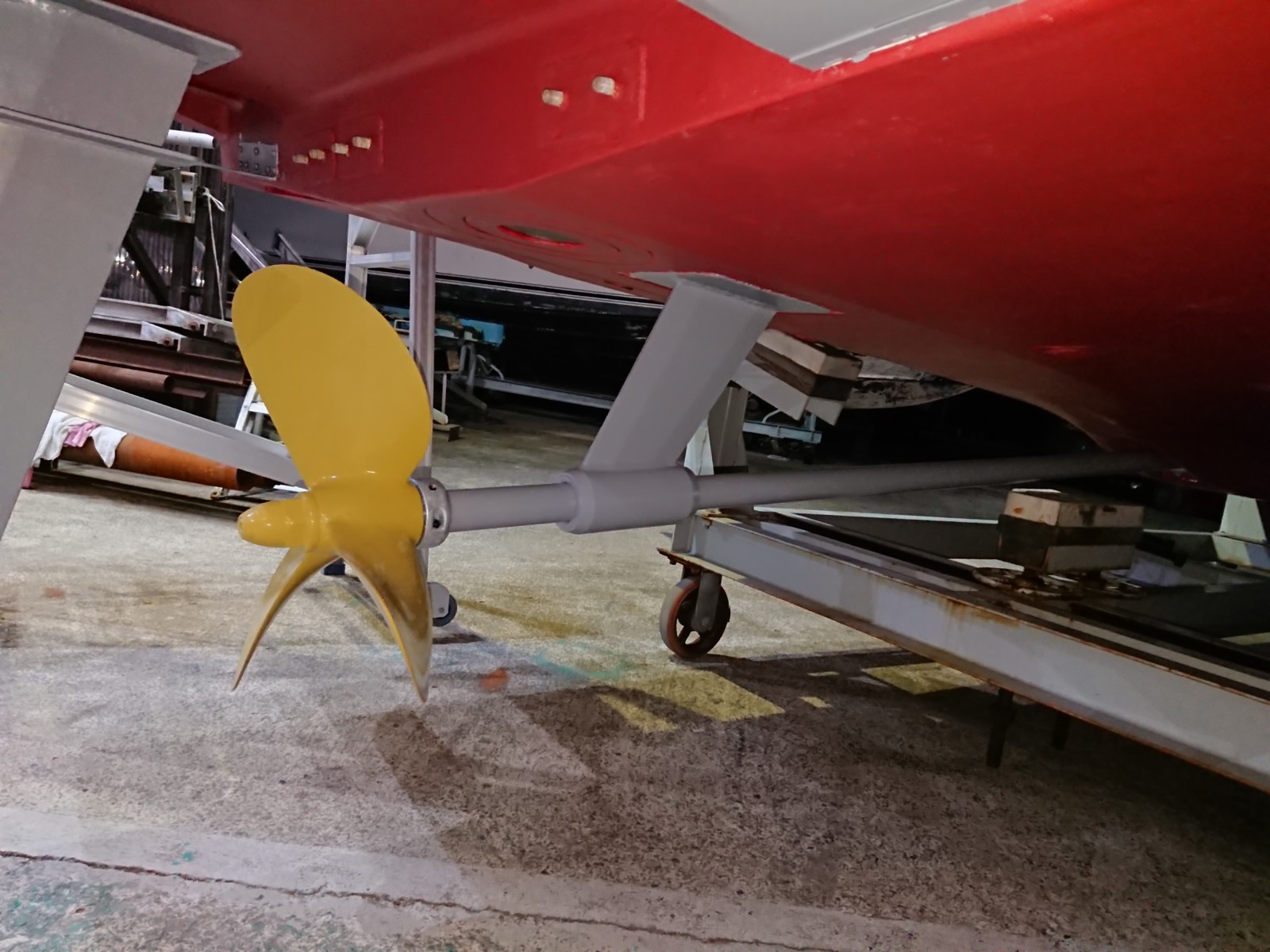プロペラ、シャフト、ブラケット、カジに、防腐塗料を塗りました。