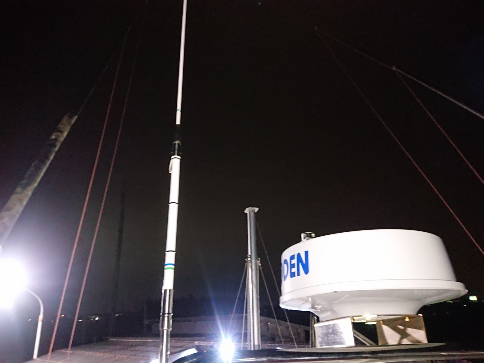 無線アンテナを延長しています。レーダーの影響で無線の入りが悪くならないよう、無線のアンテナを延長して対応しています。