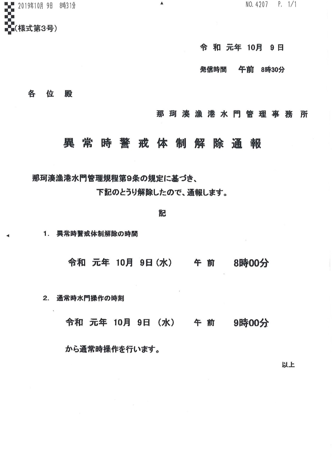 那珂湊漁港水門管理所より