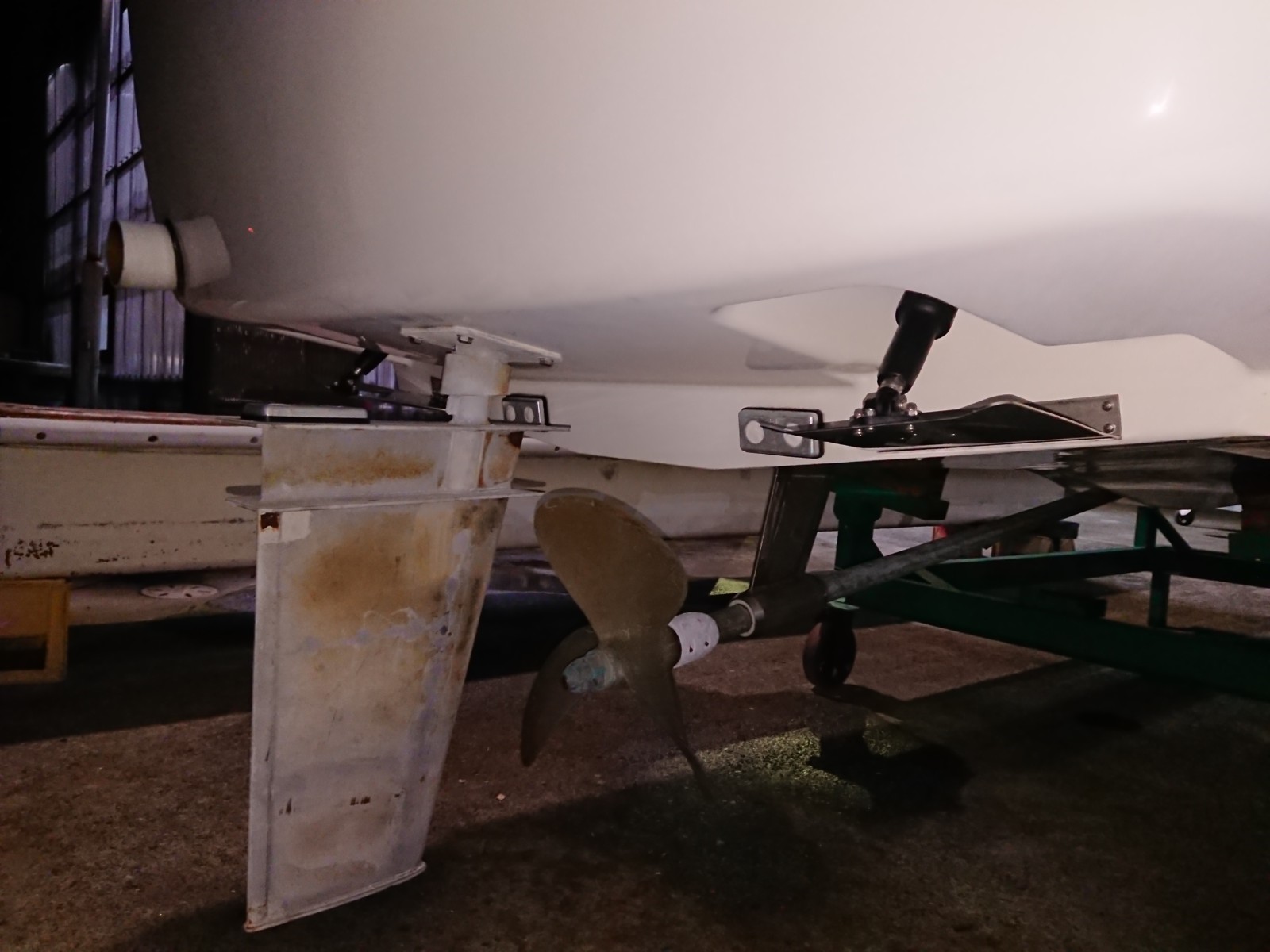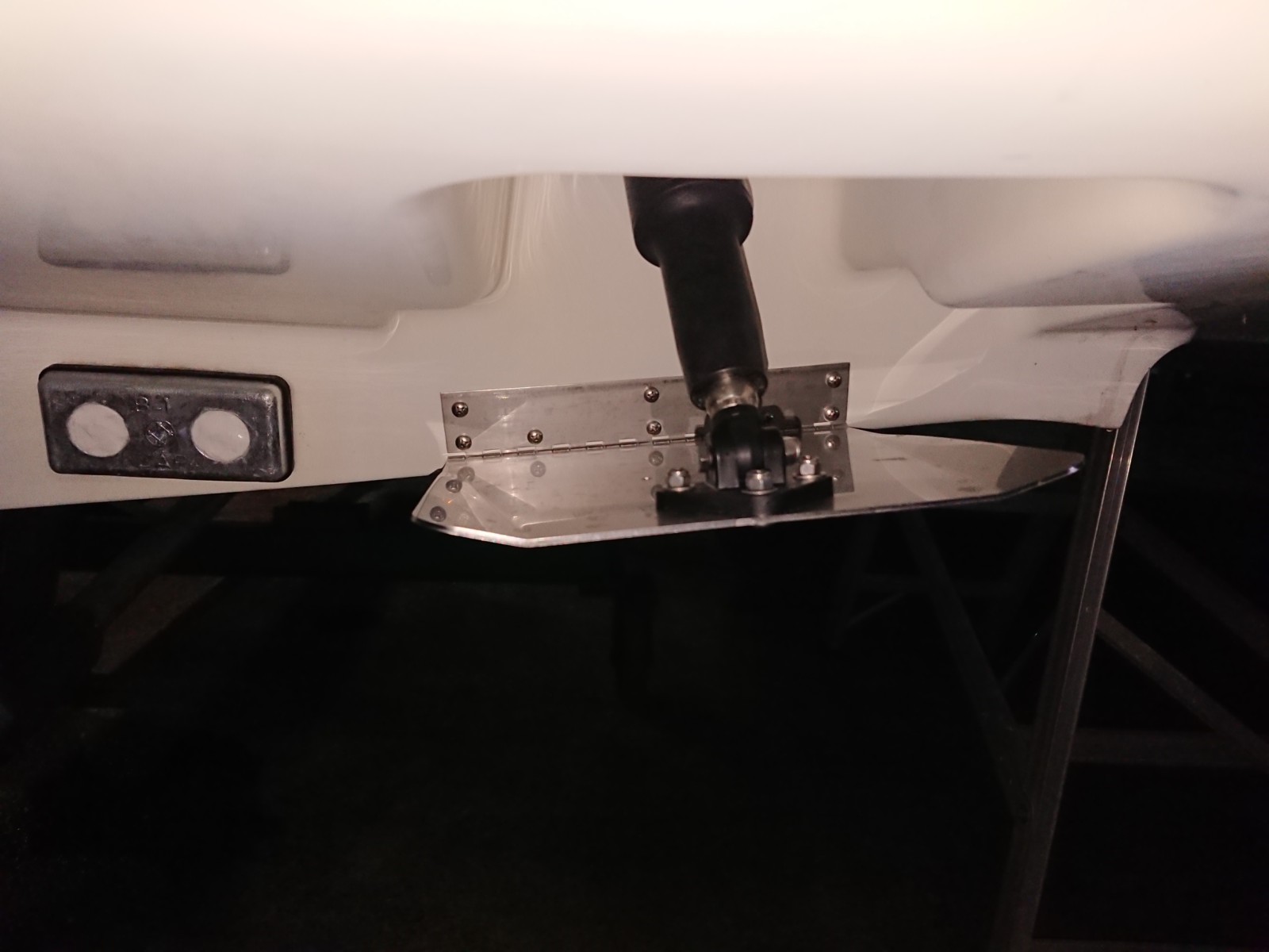 トリムタブ(フラップ)の取り付けを行いました。走行姿勢を安定させてくれる装置です。