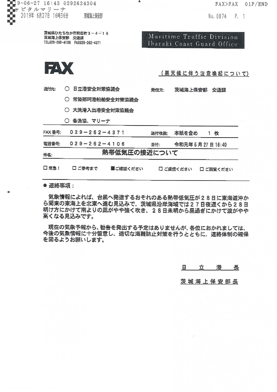 大阪サミットと重なり南から雨雲が近付いているようです。
