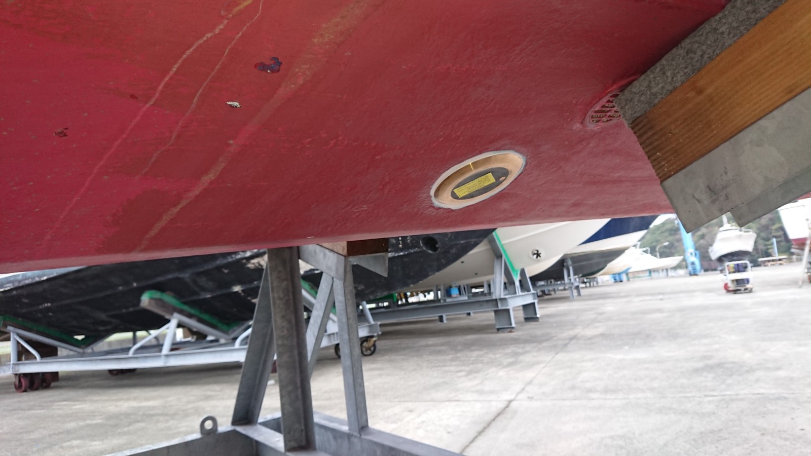 DY-34の納艇が近づき、作業の方は最終段階まできています。振動子は高性能の物をつけさせて頂きました。船底に穴を開ける工事の為、防水は念入りに、行っております。船の仕上がりに向けてさらに頑張っていきたいとおもいます。