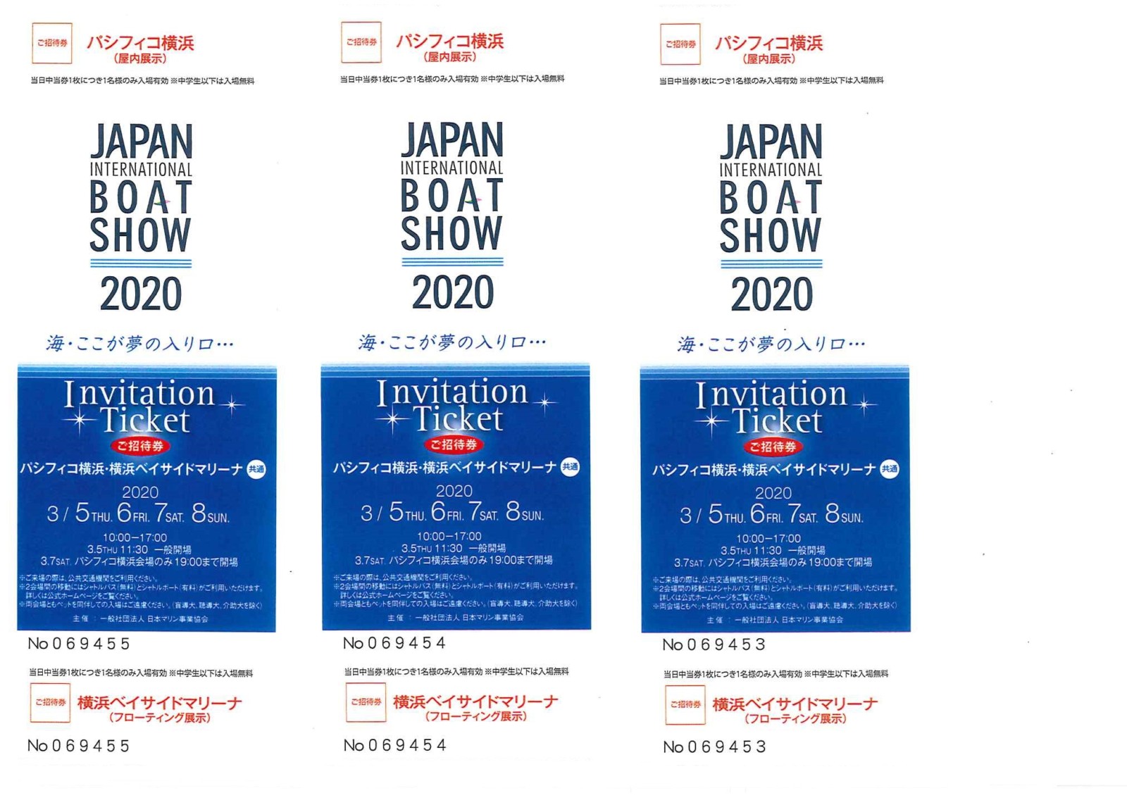 BOATSHOW2020チケット 2020年1月25日(土) 公式ブログ 2020.03.05.06.07.08 入場チケット3枚 *チケットご希望のオーナー様がいらっしゃいましたら お声掛けください。お待ちしております。