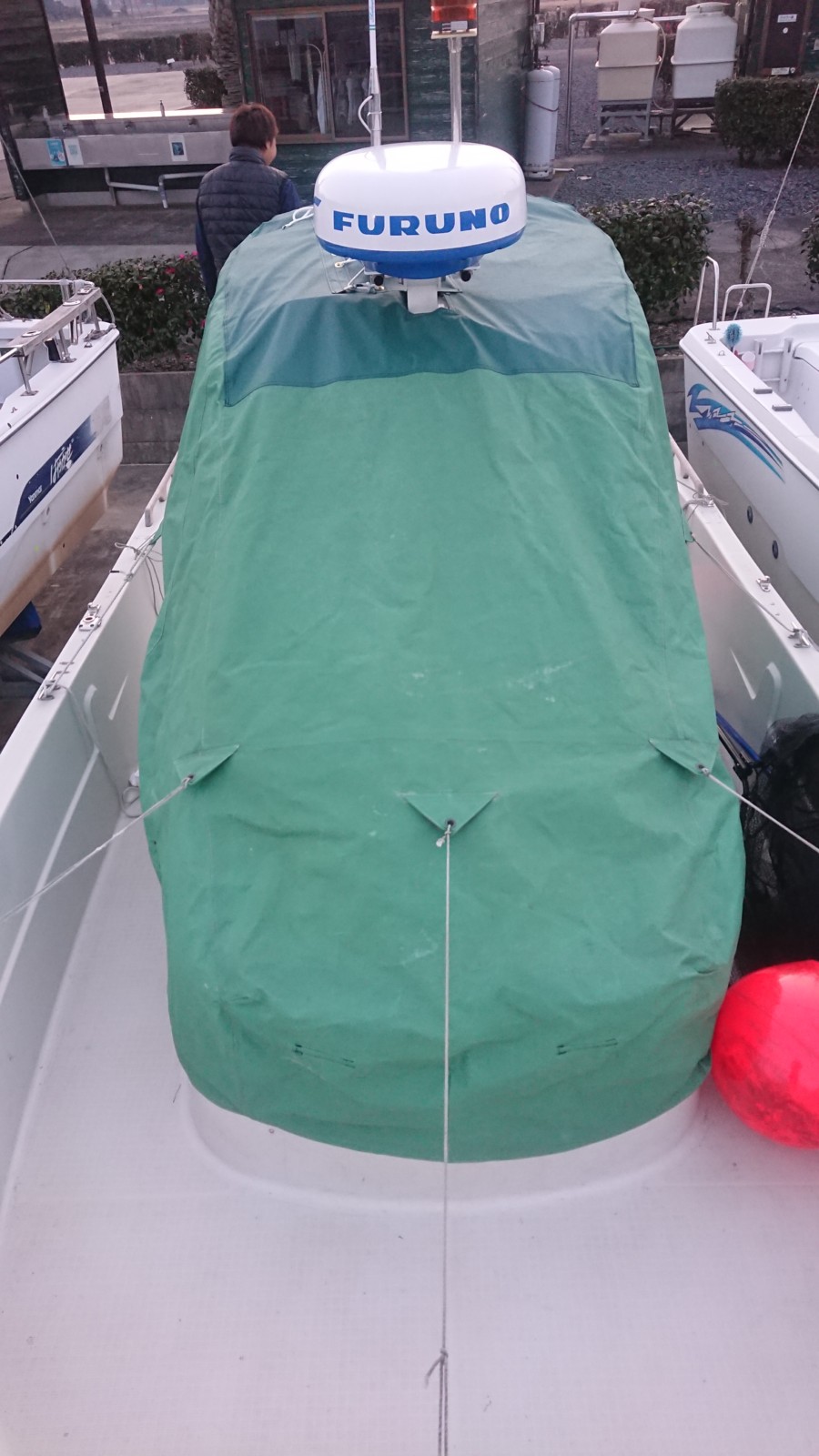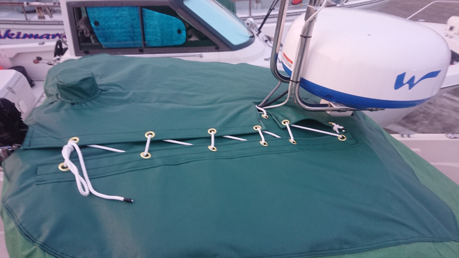 キャビンに掛かるシートカバーの改造を行いました。キャビンの屋根にレーダーやアンテナを取り付けたため、元々使っていたカバーが掛からなくなってしまったので部分的に改造して掛けられるようにしました。オーナー様に注文頂いているシートカバーの補修、または製作、大変お待たせしております。順次進めさせて頂きます。