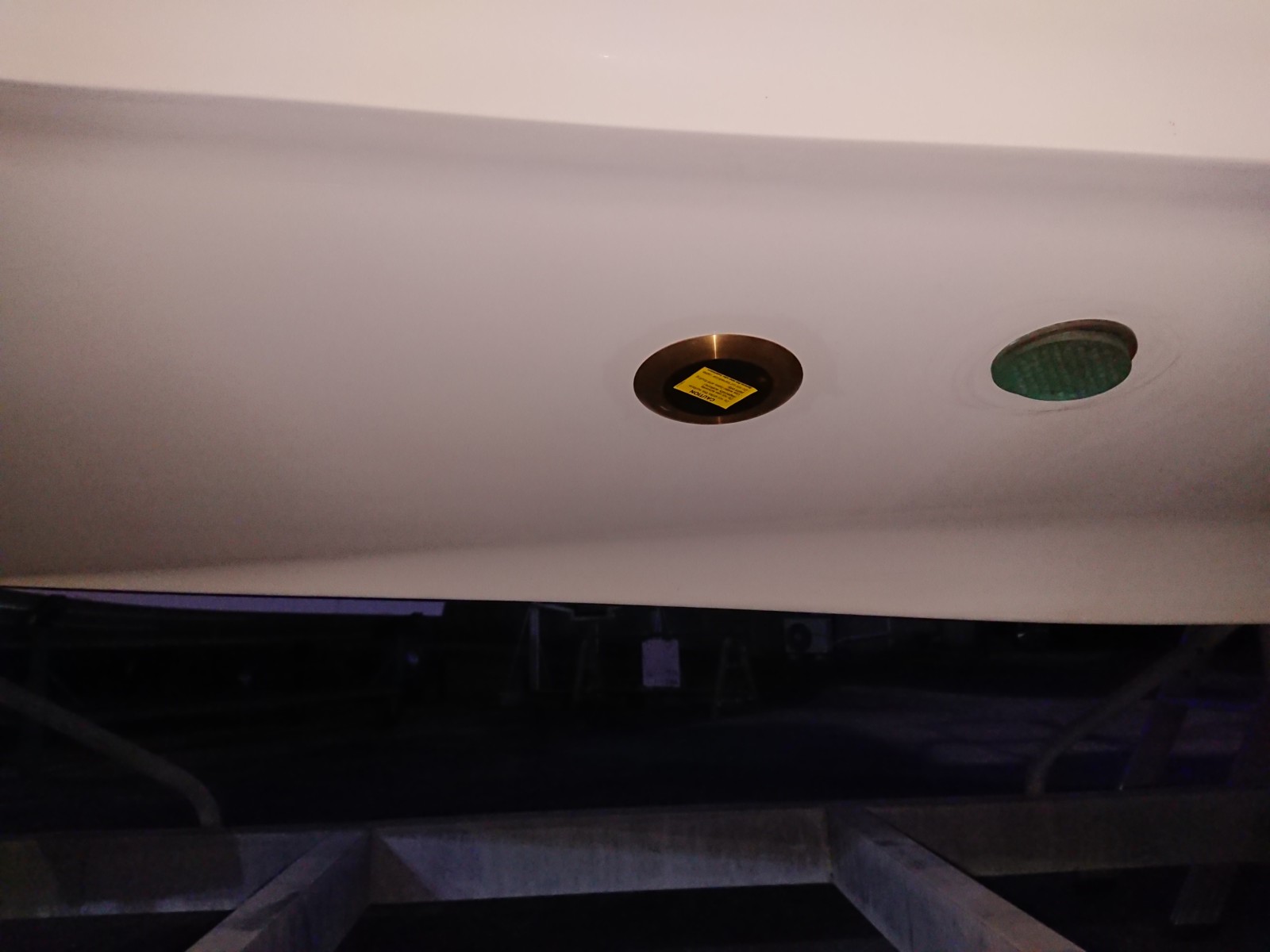 高性能のチャープ振動子を取り付けました。船底に穴を開ける作業なので防水加工は入念に行っています。