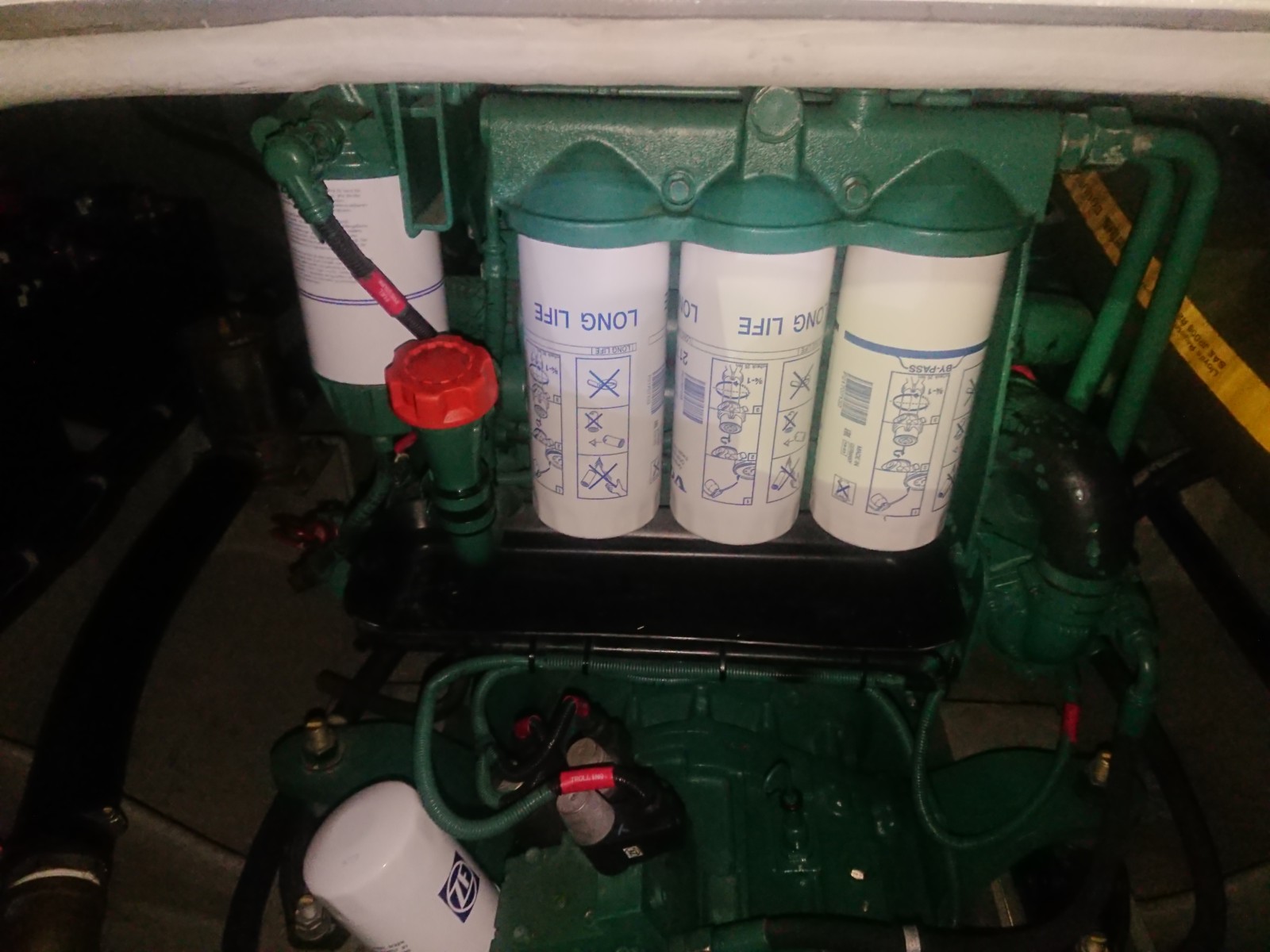 DFR-36のエンジンメンテナンスを行っています。ベルト、インペラ、エンジンオイル、マリンギアオイル、フィルター関係等の交換をしています。