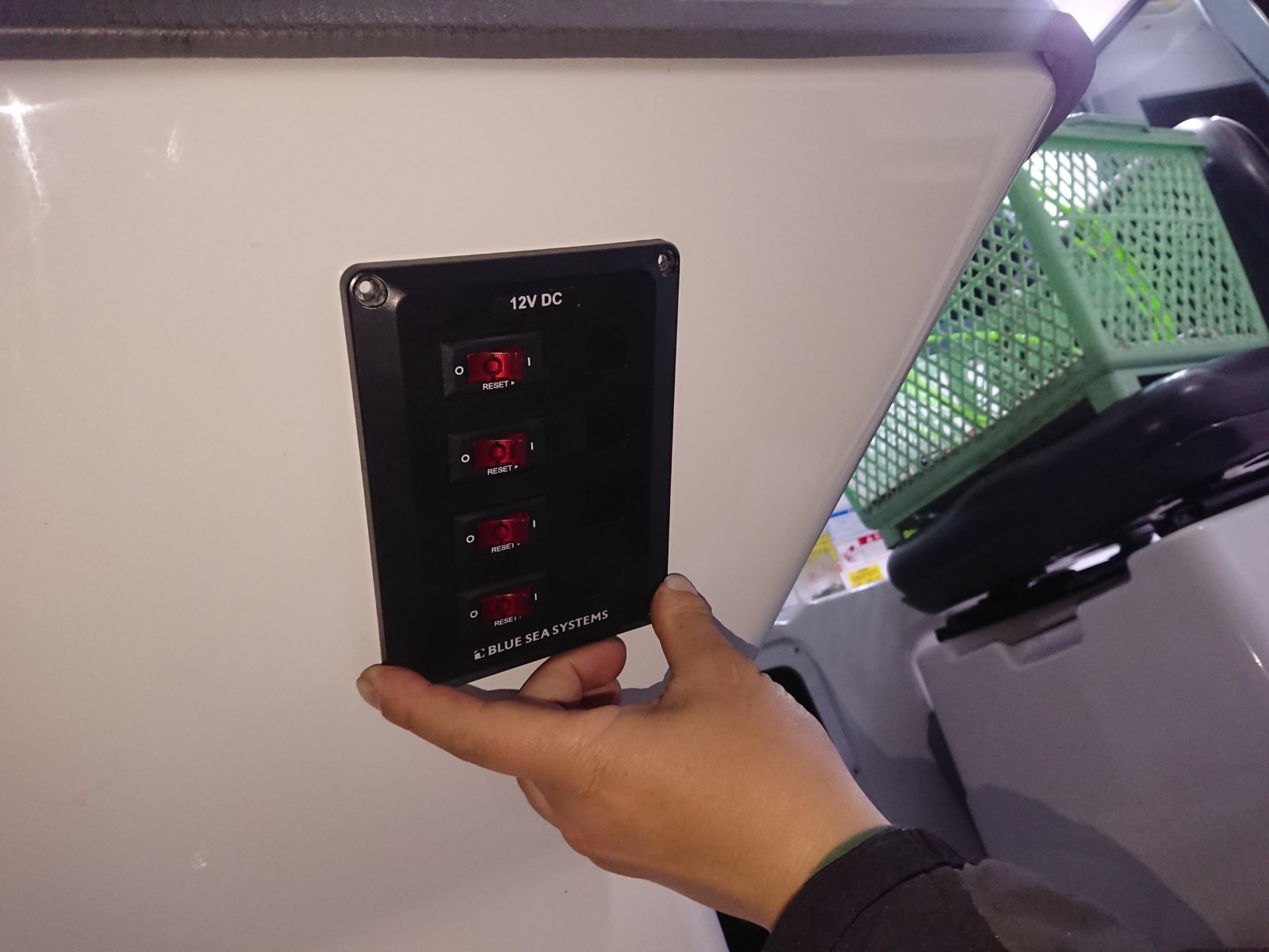 スイッチパネルの取り付けを行っています。スイッチを集約することにより、使い勝手もよく見た目もキレイに仕上がります。