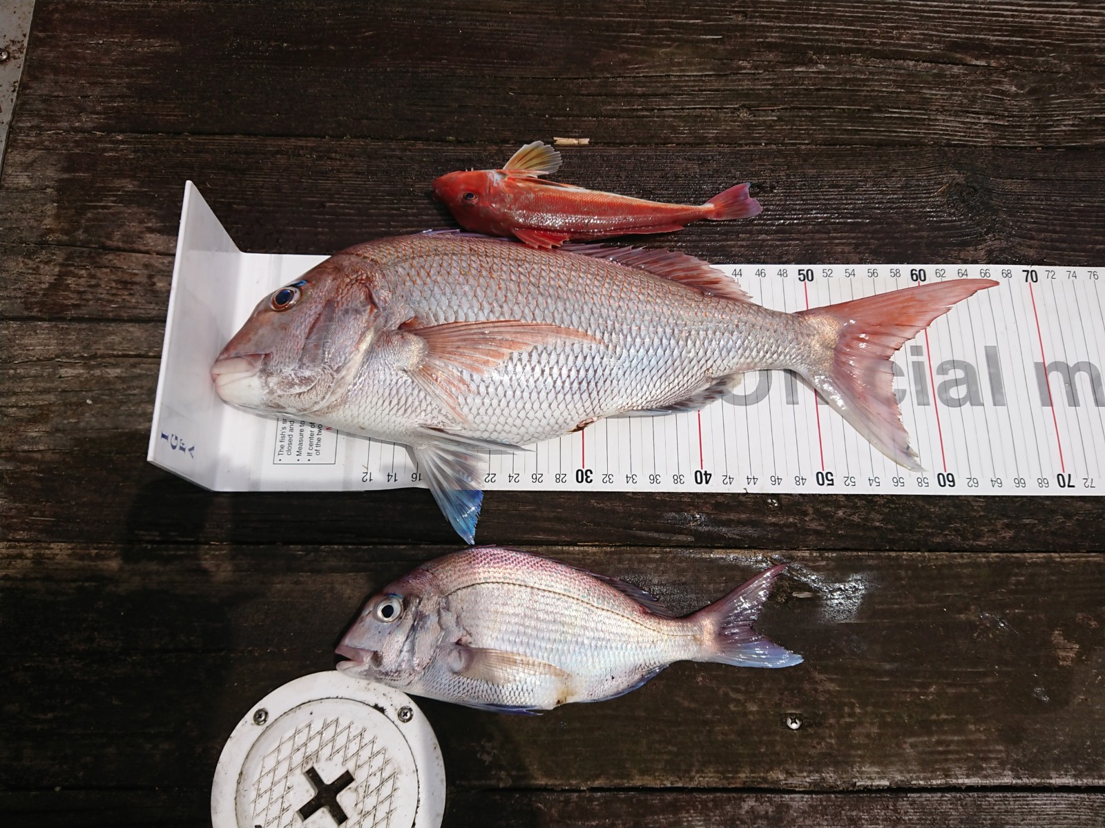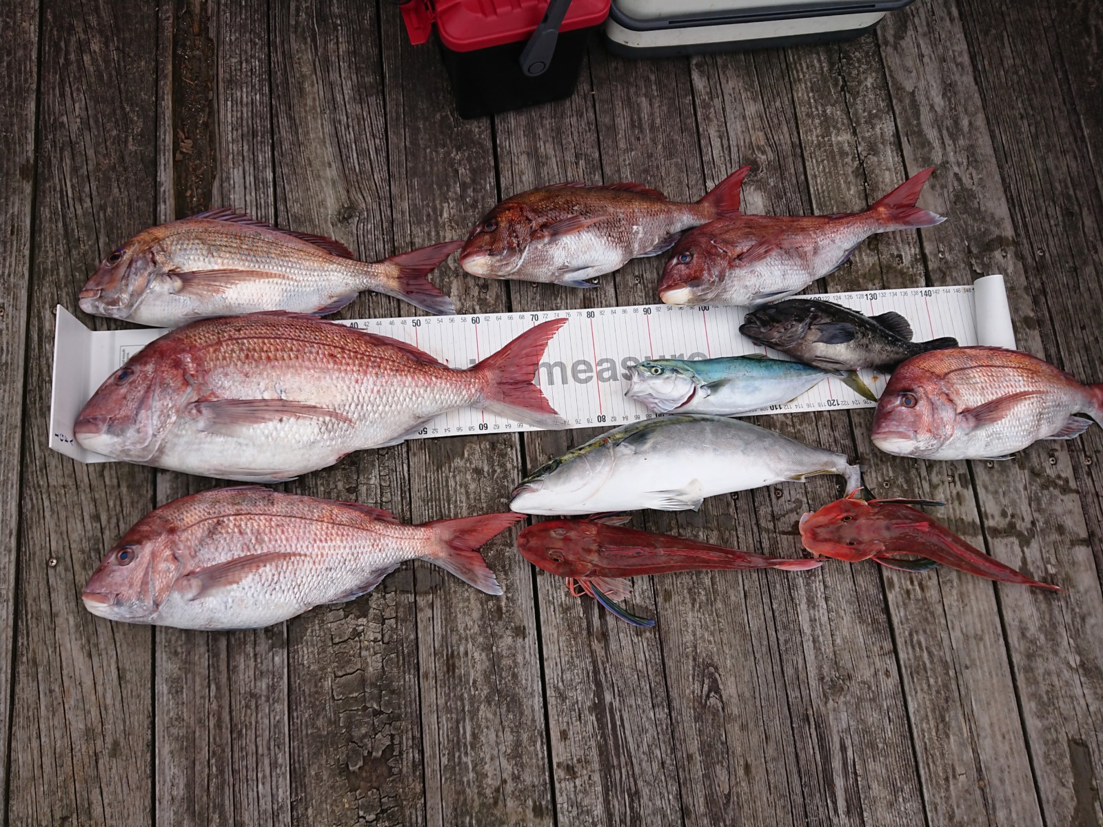 マダイ7.9㎏、ワラサ、ソイ、ホウボウ、トラフグ