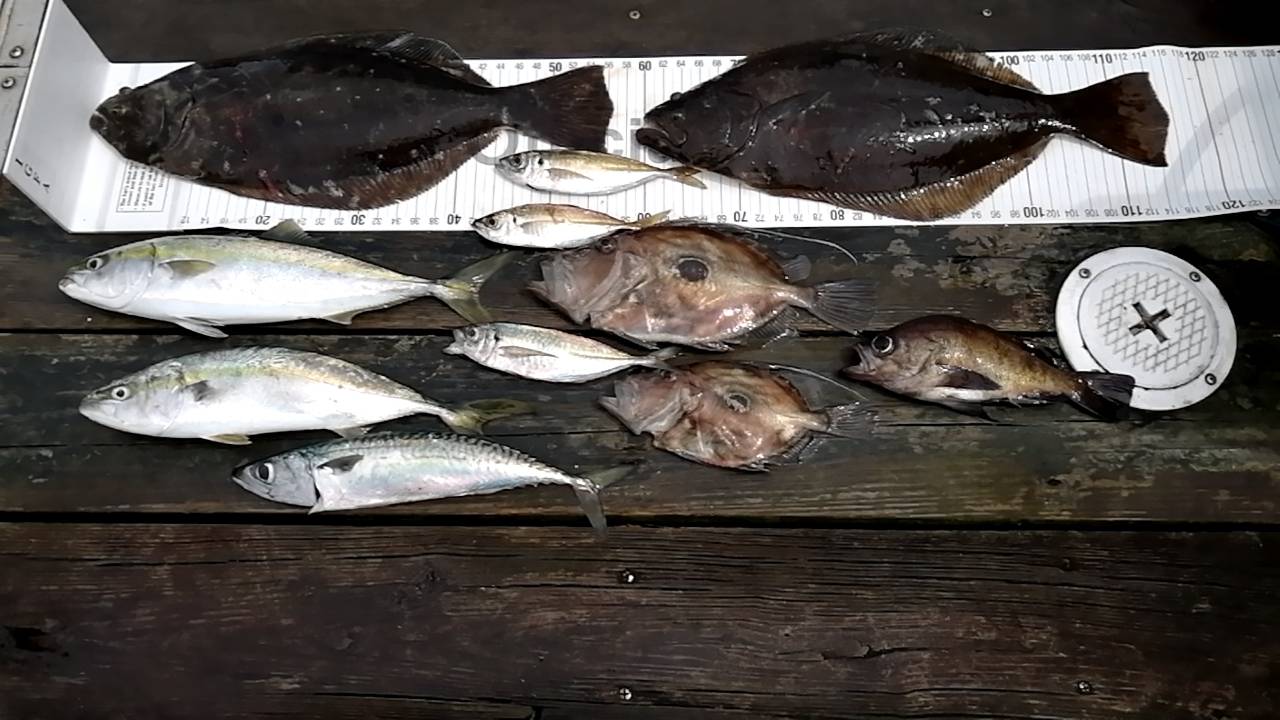 ヒラメ、イナダ、アジ、マトウダイ、黒メバル