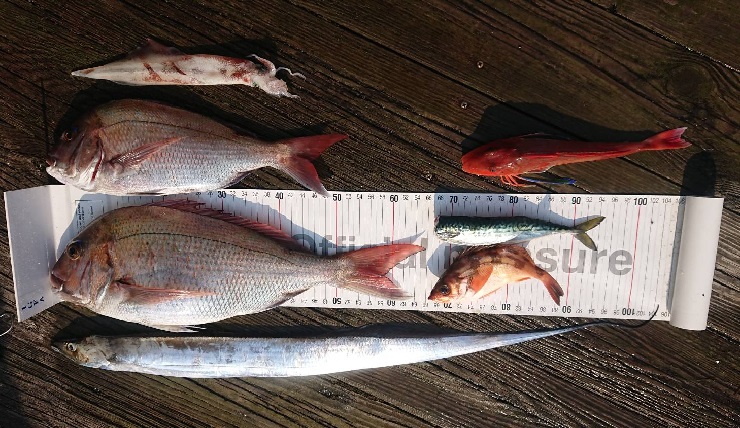 (マダイ4.0kg頭 ホウボウ・サバ・タチウオ・ヤリイカ・メバル)