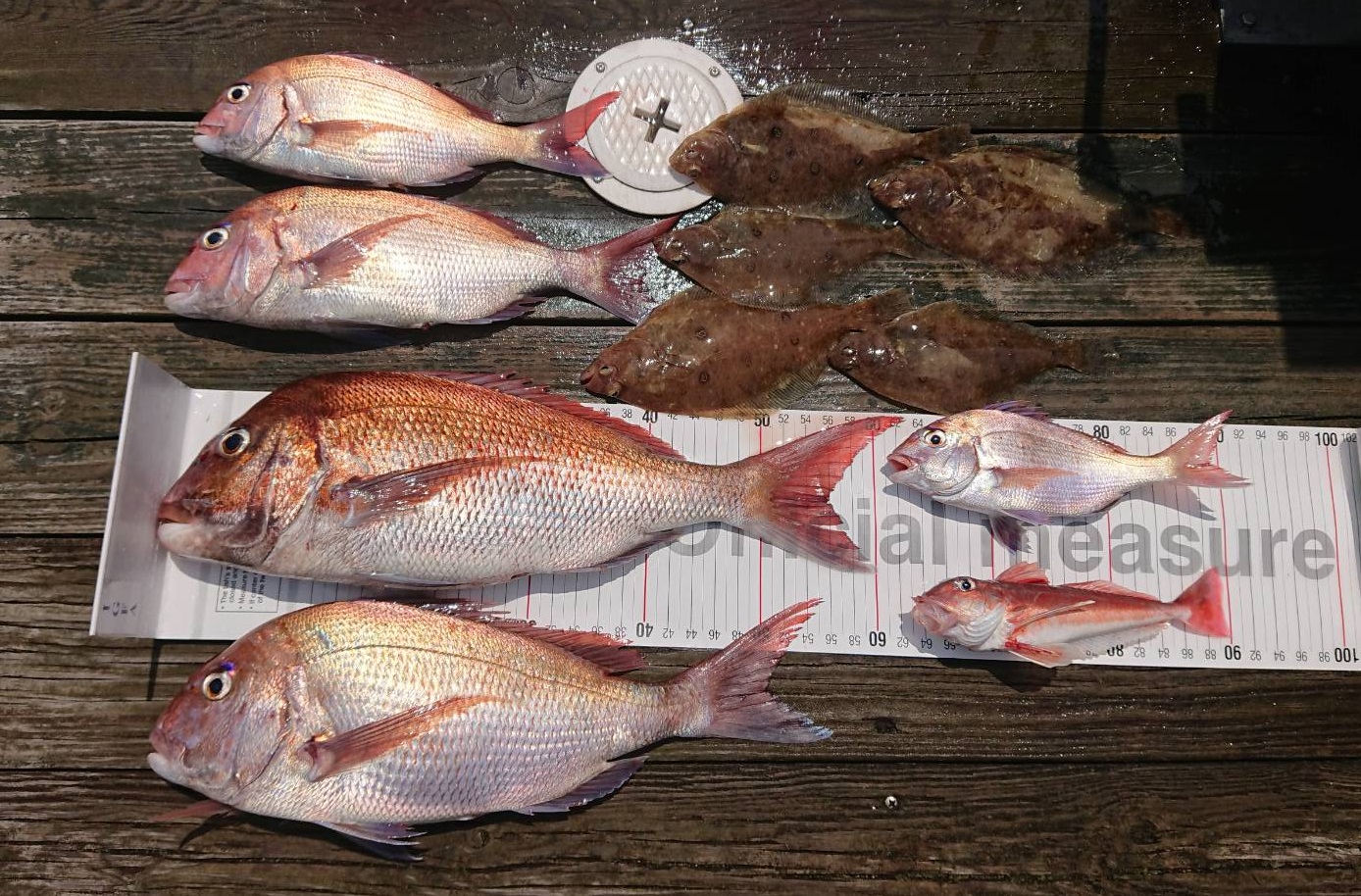 しーちゃんまるさん(ムシガレイ約50匹・マコガレイ・マダイ)