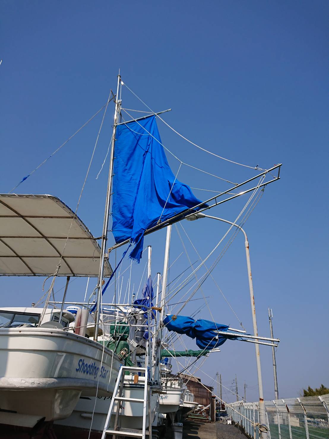 スパンカーのセールが切れてしまっているもの補修しています。シート関係の補修や新規取り付けなど是非お問い合わせください。