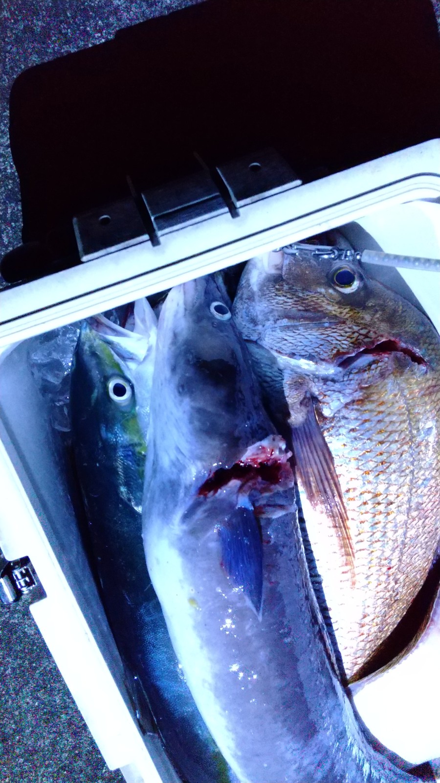 クロアナゴ、マダイ3kgクラス多数、イナダ、カンパチヒラメ、